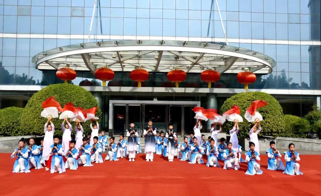 活動現(xiàn)場,70余名優(yōu)秀學(xué)生代表載歌載舞,用啦啦操《我和我的祖國》、葫蘆絲合奏《萬疆》等精彩的表演,表達對西繼迅達的深深謝意。