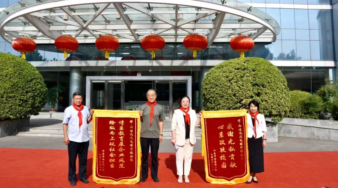 隨后,許昌經(jīng)濟技術(shù)開發(fā)區(qū)綜合服務(wù)中心副主任、文教衛(wèi)黨總支書記宋能瑜、委員徐濤,許昌市瑞昌路小學(xué)校長鄭春紅女士,親手將“情系教育展企業(yè)風(fēng)范,拾級而上現(xiàn)社會擔(dān)當(dāng)”、“感謝無私奉獻,心系孜孜校園”兩面錦旗獻給西繼迅達電梯,西繼迅達劉金忠董事長、售后總監(jiān)吳娜手捧這份謝意,與各位領(lǐng)導(dǎo)合影留念。