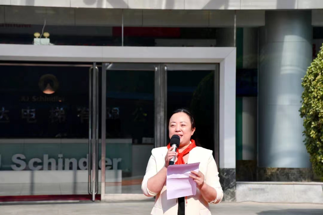 最后,公司售后總監(jiān)吳娜代表西繼迅達電梯感謝開發(fā)區(qū)文教衛(wèi)和瑞昌路小學(xué)送來的錦旗。她說,西繼迅達作為一家 有強烈社會責(zé)任感的企業(yè),為了給咱們?nèi)鸩沸W(xué)的同學(xué)們營造一個良好的學(xué)習(xí)環(huán)境,讓孩子們在更多的關(guān)愛中愉 快地學(xué)習(xí)、幸福地成長,我們西繼迅達電梯為瑞昌路小學(xué)教學(xué)樓捐助電梯,充分凝聚著我們西繼迅達電梯劉董事長 的愛心和熱情,寄托著我們所有西繼迅達人的殷切期望,祝愿孩子們好好學(xué)習(xí)!健康成長!早日實現(xiàn)自己的人生理想。