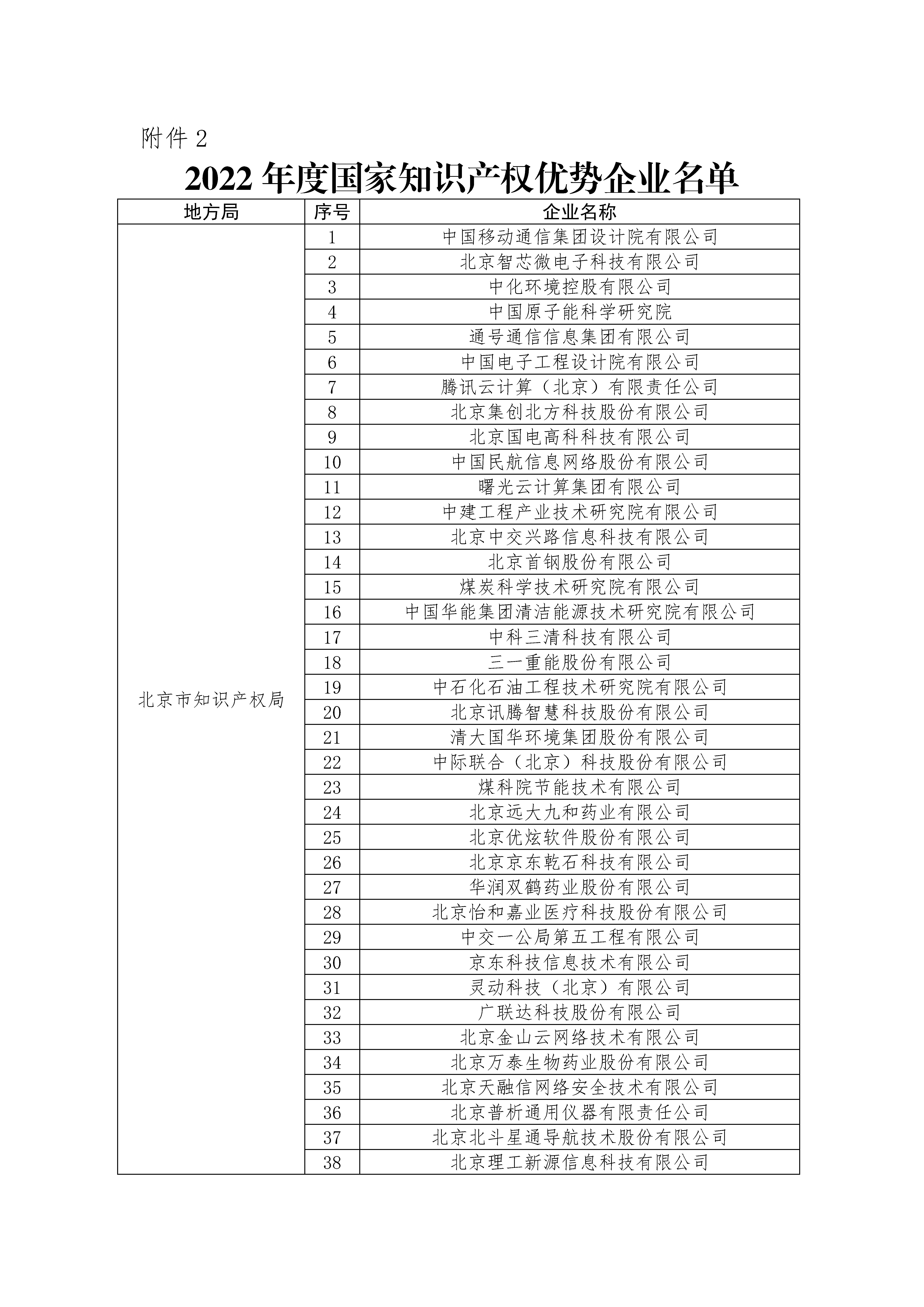5月26日,國家知識產權局辦公室下發國知辦函運字〔2022〕497號文件《國家知識產權局辦公室關于面向企業開展2022年度知識產權強國建設示范工作的通知》。目的就是要著力培育一批知識產權數量和質量較高、知識產權保護和運用能力較強,知識產權市場競爭優勢初步形成,具有區域影響力的優勢企業,以及具有一定引領帶頭作用的示范企業。國家知識產權局按照文件通知要求,經企業測評、推薦上報、審核確認等程序,于9 月23 日正式發布公示通知,擬認定482 家企業為國家知識產權示范企業、2513家企業為國家知識產權優勢企業。