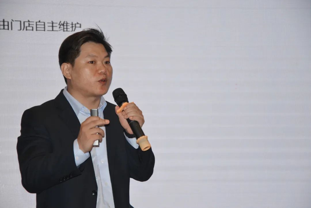 信息工程中心研發總監周振朋講解公司開發的數字化專業高效門店系統