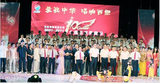 6月27日晚,夜幕下的許都廣場,華燈璀璨,流光溢彩。許都大劇院里花團錦簇,座無虛席,到處洋溢著一派喜氣洋洋的歡樂氣氛。公司在這隆重舉行題為“愛我中華、唱響西繼”暨公司成立十周年慶典大型文藝晚會。公司領導劉金忠、李國鈞、陳衛東、劉和平、林萬里、劉剛、趙紅杰、于銘生、袁建華、范良勇及員工代表和演職人員1200余人觀看了演出。