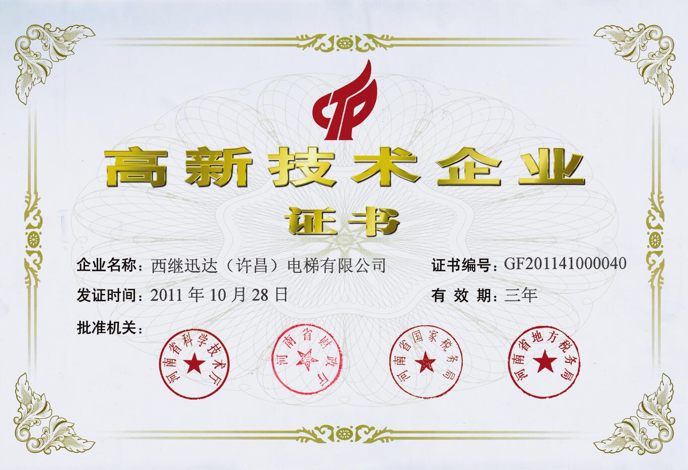 2008年11月,西繼迅達(許昌)電梯有限公司首次獲評國家重點支持的高新技術企業。三年來,西繼迅達電梯公司各方面都取得了長足的發展,企業充分發揮高新技術企業的優勢,進一步規范各項管理工作,把科技創新、開拓市場放在首位,逐步擴充企業產品科技含量,提升企業整體核心競爭力,不斷為客戶提供優質的產品和高效的服務。