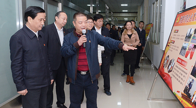 日前,市委書記武國定,帶領(lǐng)全市基層黨建工作觀摩團蒞臨公司,對公司黨建工作進行實地觀摩。公司領(lǐng)導(dǎo)劉金忠、陳衛(wèi)東陪同觀摩,并對公司黨建工作整體狀況,進行了詳細匯報。