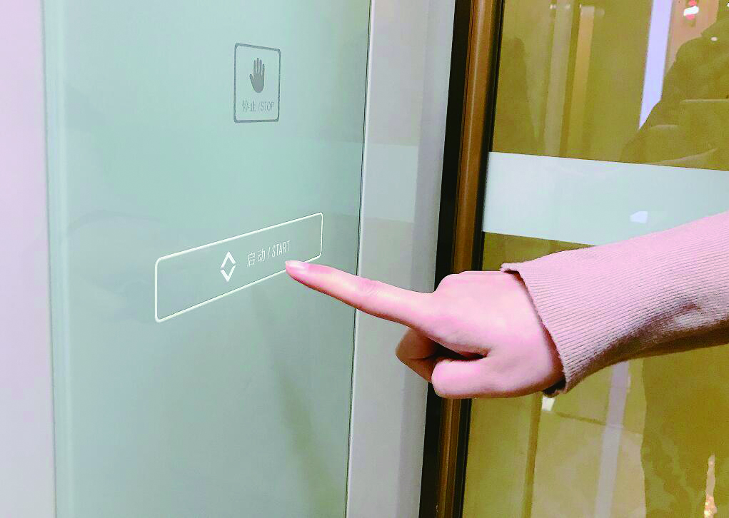 無接觸感應按鈕,采用電容感應原理,人手距離按鈕5mm即可觸發按鈕,感應靈敏,按鈕燈亮起即表示選層成功,無需用手去點按或者接觸按鈕,避免乘客在乘坐電梯時因手部觸碰被傳染病毒的風險。