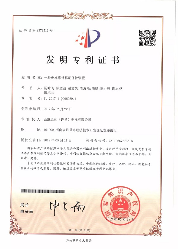 日前,西繼迅達(dá)在一天之內(nèi),同時(shí)獲得國(guó)家知識(shí)產(chǎn)權(quán)局為公司頒發(fā)的兩件發(fā)明專(zhuān)利證書(shū),至此前五個(gè)月公司共獲得授權(quán)專(zhuān)利55件,專(zhuān)利累計(jì)總量增至1226件。