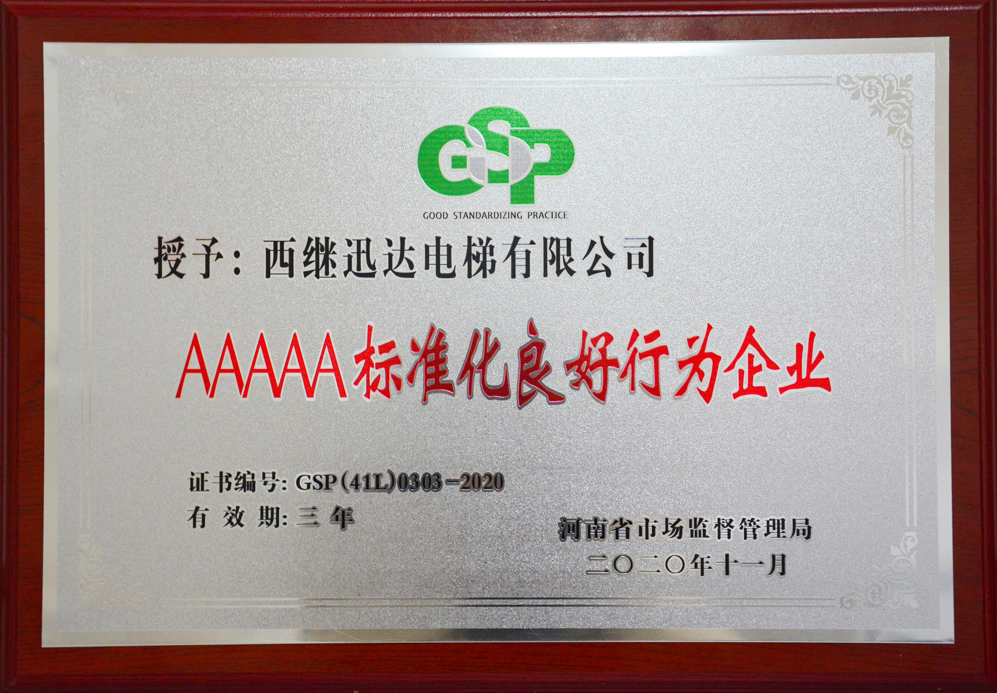 西繼迅達榮膺AAAAA級標準化良好行為企業