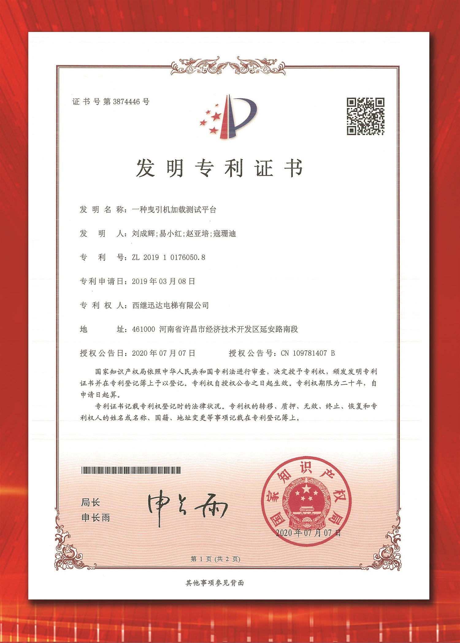 又一項發明專利花落西繼迅達